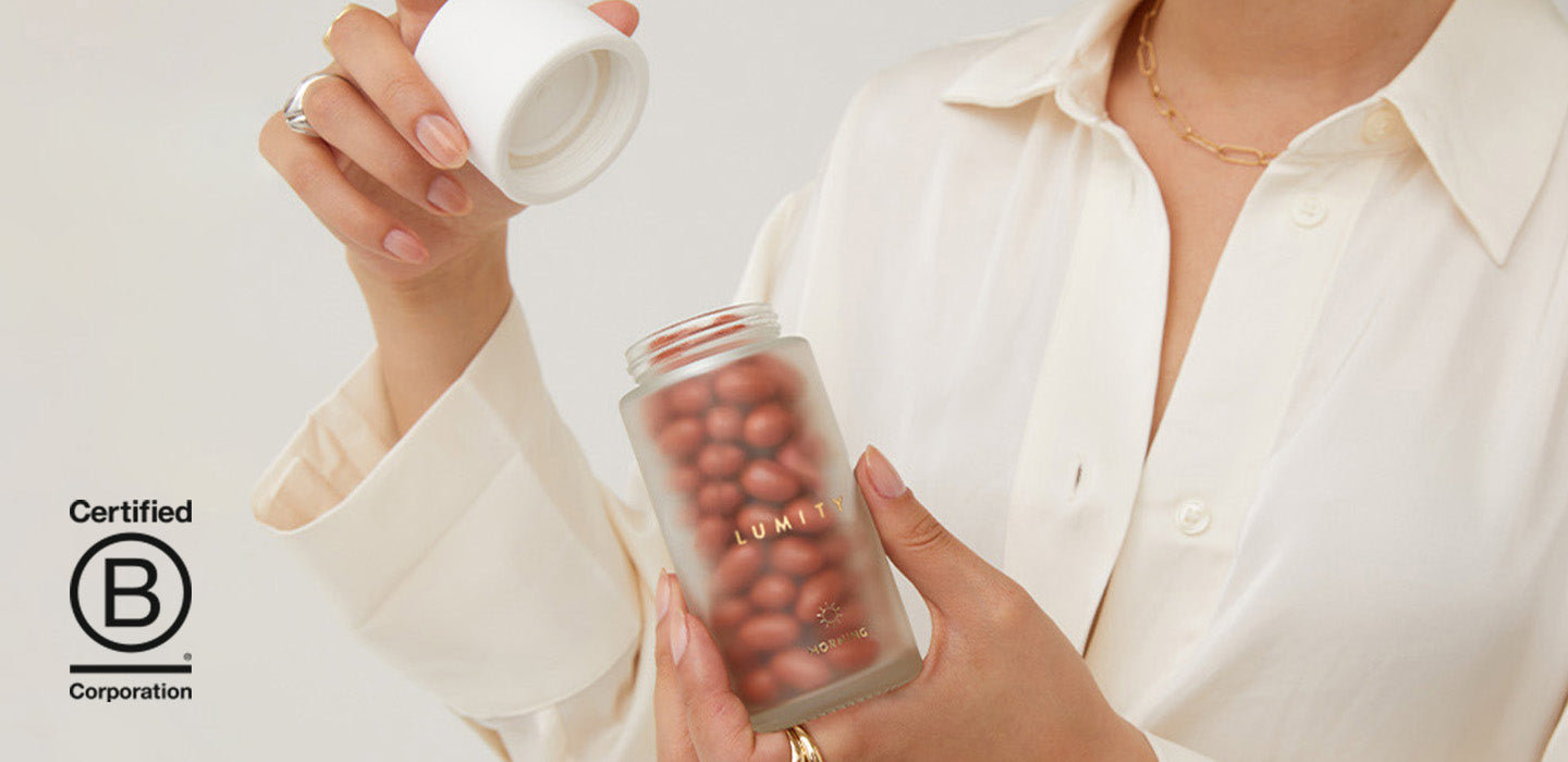 As a B-Corp, we are produ to be Leaping Bunny certified. Our products are never tested on animals. All of our packaging is reusable or recyclable, and our supplements come in fully compostable pouches.
